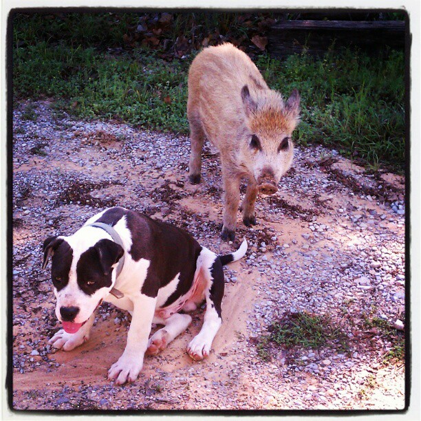 I started cleaning Terry Bradshaw's pool. I met him. He's nice. I saw these two little guys on the way to Mr Bradshaw's house.