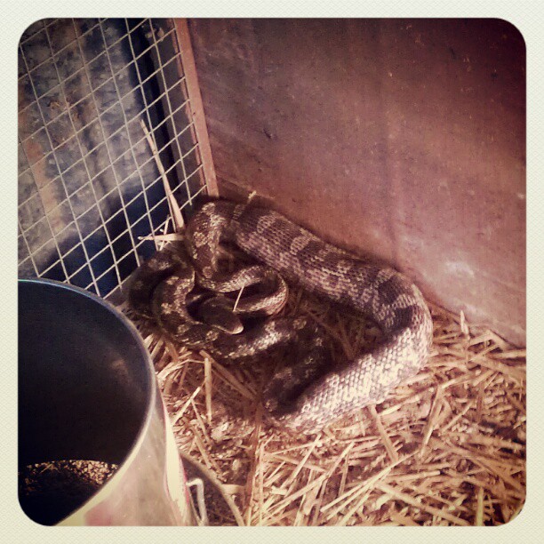 Then, I immediately called Melanie and yelled "There's a snake in my brooder!!! What do I do? What do I do?" To which she replied, much more helpfully than the breakfast retort I might add "Get an axe or a machete and kill it."